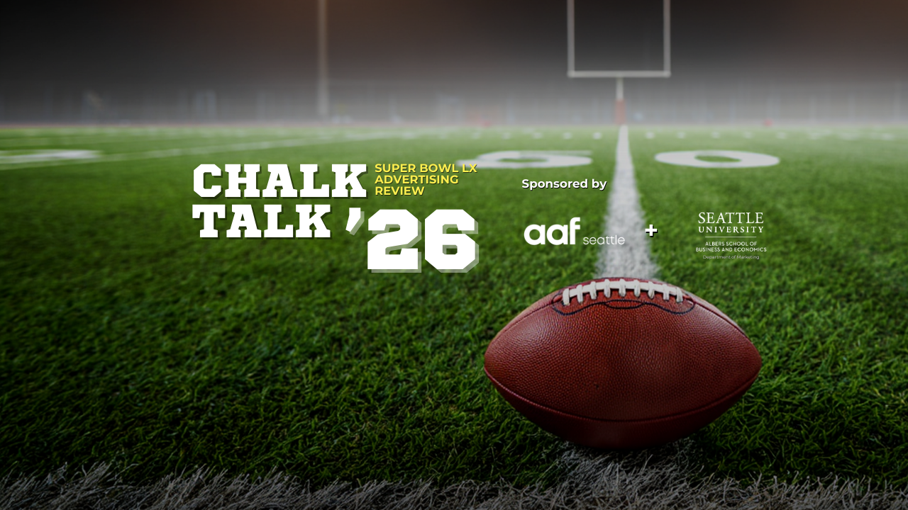 The Super Bowl is advertising’s biggest stage—and each year, the American Advertising Federation Seattle (AAF Seattle) brings the community together to break it all down. Chalk Talk – Super Bowl Ad Review is our annual deep dive into the most talked-about commercials of the year, featuring a panel of industry professionals sharing their perspectives, opinions, alternative approaches, and thoughtful criticism.